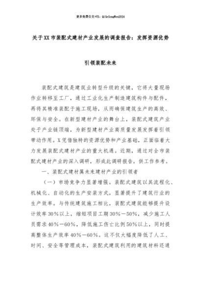 【七哥公文】2024年:关于XX市装配式建材产业发展的调查报告:发挥资源优势引领装配未来+更多免费公文+VX:QiGeGongWen2024