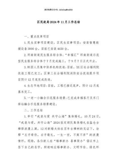 / 【七哥公文】2024年:区民政局2024年11月工作总结+更多免费公文+VX:QiGeGongWen2024