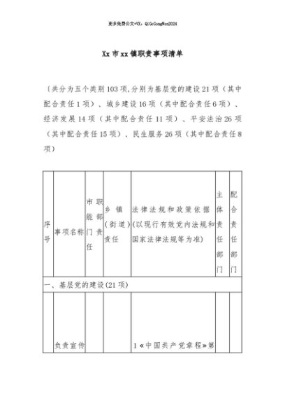 【七哥公文】2024年:Xx市xx镇职责事项清单+更多免费公文+VX:QiGeGongWen2024