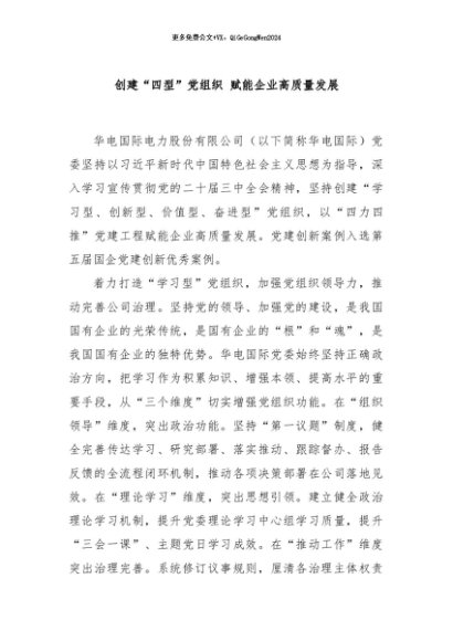 / 【七哥公文】2024年:创建“四型”党组织 赋能企业高质量发展+更多免费公文+VX:QiGeGongWen2024