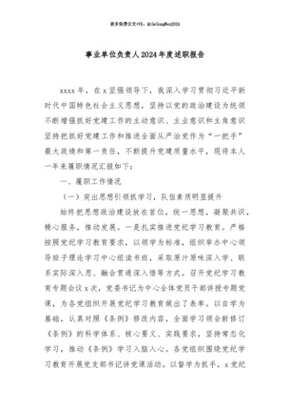 / 【七哥公文】2024年:事业单位负责人2024年度述职报告+更多免费公文+VX:QiGeGongWen2024