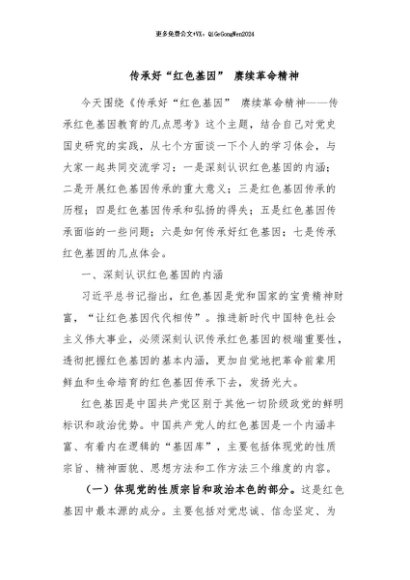/ 【七哥公文】2024年:传承好“红色基因” 赓续革命精神+更多免费公文+VX:QiGeGongWen2024