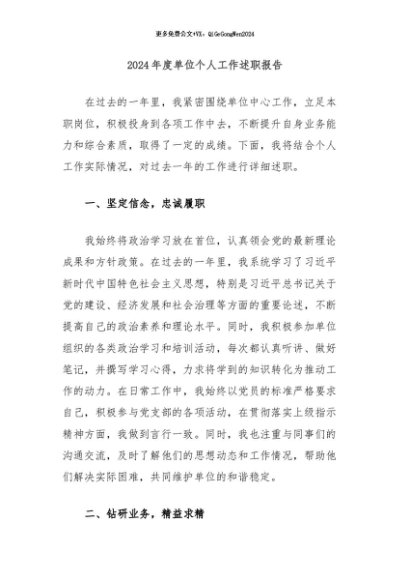 / 【七哥公文】2024年:2024年度单位个人工作述职报告+更多免费公文+VX:QiGeGongWen2024