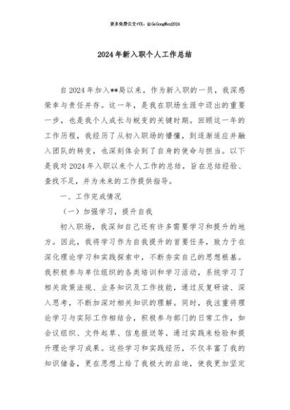 / 【七哥公文】2024年:2024年新入职个人工作总结+更多免费公文+VX:QiGeGongWen2024