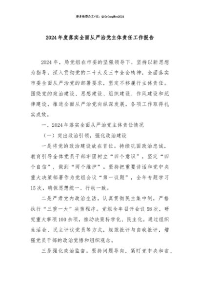 / 【七哥公文】2024年:2024年度落实全面从严治党主体责任工作报告+更多免费公文+VX:QiGeGongWen2024