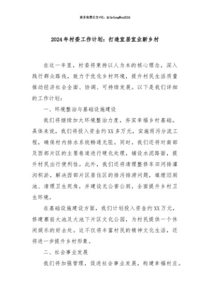 / 【七哥公文】2024年:2024年村委工作计划:打造宜居宜业新乡村+更多免费公文+VX:QiGeGongWen2024