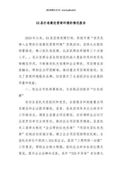 / 【七哥公文】2024年:XX县打造最优营商环境的情况报告+更多免费公文+VX:QiGeGongWen2024
