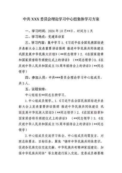 / 【七哥公文】2024年:10月理论学习中心组集体学习方案+更多免费公文+VX:QiGeGongWen2024