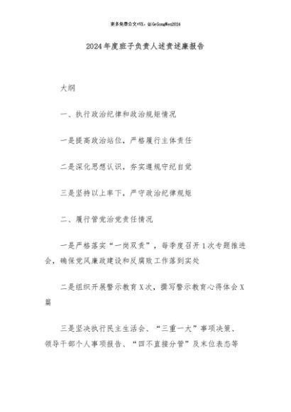 / 【七哥公文】2024年:2024年度班子负责人述责述廉报告+更多免费公文+VX:QiGeGongWen2024