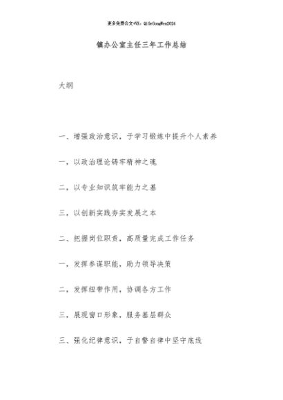 / 【七哥公文】2024年:镇办公室主任三年工作总结+更多免费公文+VX:QiGeGongWen2024