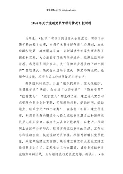 / 【七哥公文】2024年:2024年关于流动党员管理的情况汇报材料+更多免费公文+VX:QiGeGongWen2024