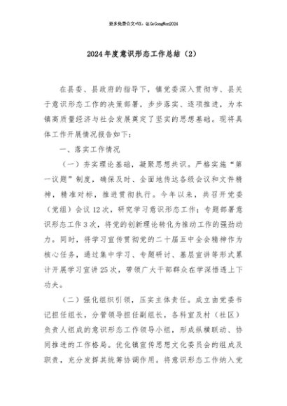 / 【七哥公文】2024年:2024年度意识形态工作总结(2)+更多免费公文+VX:QiGeGongWen2024