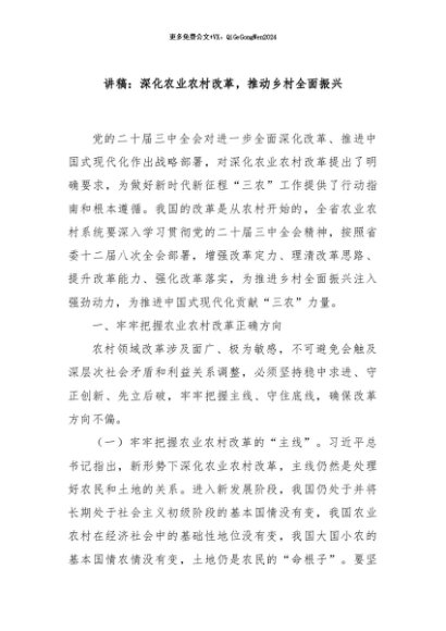 / 【七哥公文】2024年:讲稿:深化农业农村改革,推动乡村全面振兴+更多免费公文+VX:QiGeGongWen2024