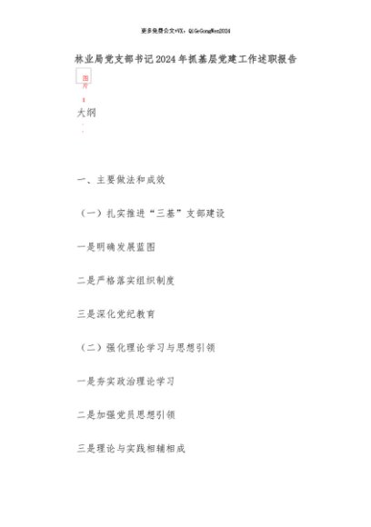 / 【七哥公文】2024年:林业局党支部书记2024年抓基层党建工作述职报告+更多免费公文+VX:QiGeGongWen2024