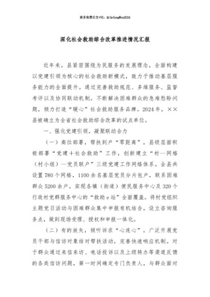 【七哥公文】2024年:深化社会救助综合改革推进情况汇报+更多免费公文+VX:QiGeGongWen2024