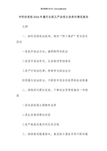 【七哥公文】2024年:市科协党组2024年履行全面从严治党主体责任情况报告+更多免费公文+VX:QiGeGongWen2024