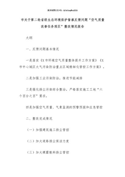 【七哥公文】2024年:市关于第二轮省级生态环境保护督察反馈问题“空气质量改善任务艰巨”整改情况报告+更多免费公文+VX:QiGeGongWen2024