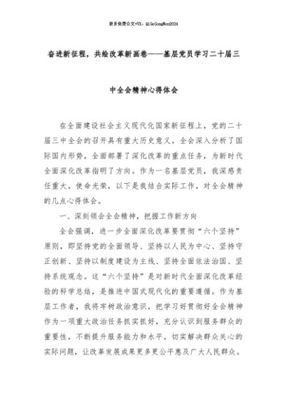 【七哥公文】2024年:奋进新征程,共绘改革新画卷——基层党员学习二十届三中全会精神心得体会+更多免费公文+VX:QiGeGongWen2024