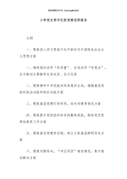 / 【七哥公文】2024年:小学党支部书记抓党建述职报告+更多免费公文+VX:QiGeGongWen2024