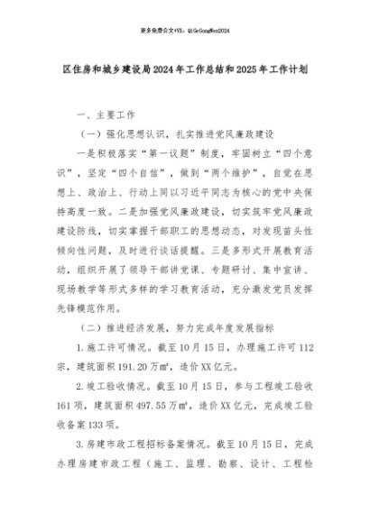 【七哥公文】2024年:区住房和城乡建设局2024年工作总结和2025年工作计划+更多免费公文+VX:QiGeGongWen2024