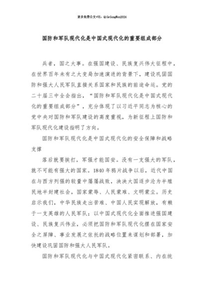 【七哥公文】2024年:国防和军队现代化是中国式现代化的重要组成部分+更多免费公文+VX:QiGeGongWen2024