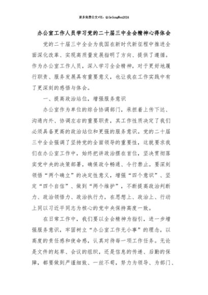/ 【七哥公文】2024年:办公室工作人员学习党的二十届三中全会精神心得体会+更多免费公文+VX:QiGeGongWen2024