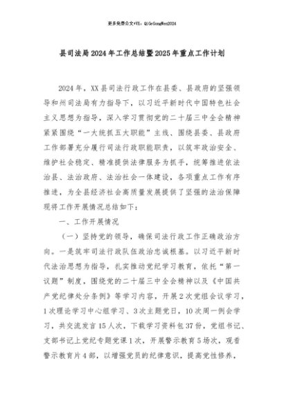 【七哥公文】2024年:县司法局2024年工作总结暨2025年重点工作计划+更多免费公文+VX:QiGeGongWen2024