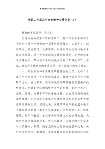 / 【七哥公文】2024年:党的二十届三中全会精神心得体会(7)+更多免费公文+VX:QiGeGongWen2024