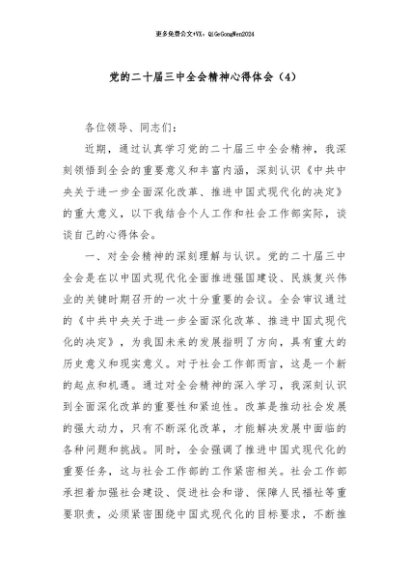 【七哥公文】2024年:党的二十届三中全会精神心得体会(4)+更多免费公文+VX:QiGeGongWen2024