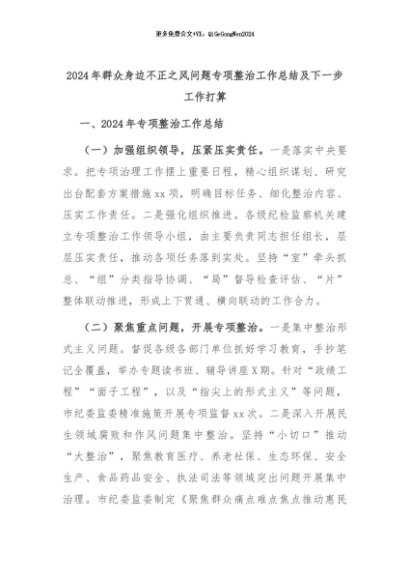 【七哥公文】2024年:2024年群众身边不正之风问题专项整治工作总结及下一步工作打算+更多免费公文+VX:QiGeGongWen2024
