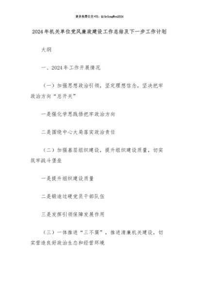 【七哥公文】2024年:2024年机关单位党风廉政建设工作总结及下一步工作计划+更多免费公文+VX:QiGeGongWen2024