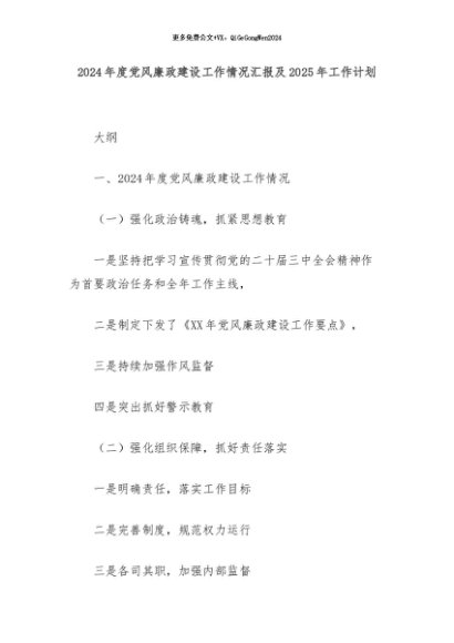 【七哥公文】2024年:2024年度党风廉政建设工作情况汇报及2025年工作计划+更多免费公文+VX:QiGeGongWen2024