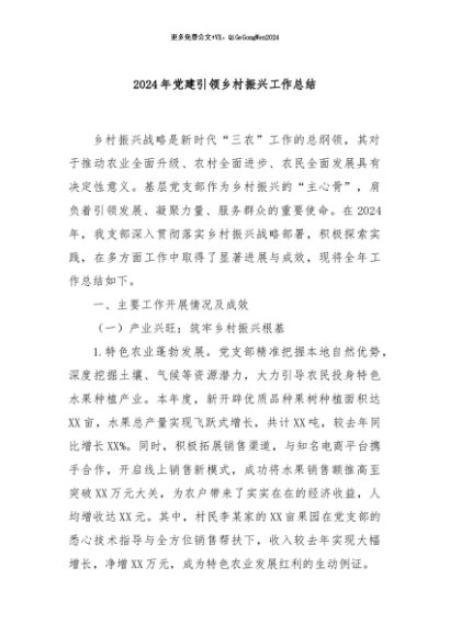 / 【七哥公文】2024年:2024年党建引领乡村振兴工作总结+更多免费公文+VX:QiGeGongWen2024