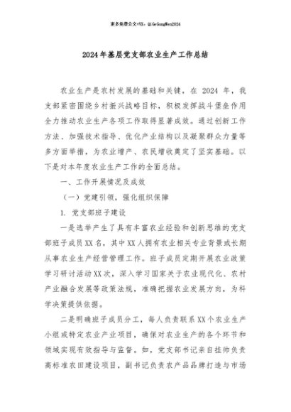 / 【七哥公文】2024年:2024年基层党支部农业生产工作总结+更多免费公文+VX:QiGeGongWen2024