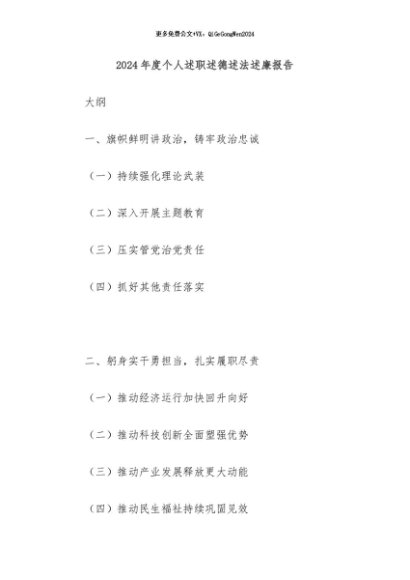 / 【七哥公文】2024年:2024年度个人述职述德述法述廉报告+更多免费公文+VX:QiGeGongWen2024
