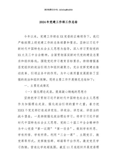 / 【七哥公文】2024年:2024年党建工作部工作总结+更多免费公文+VX:QiGeGongWen2024
