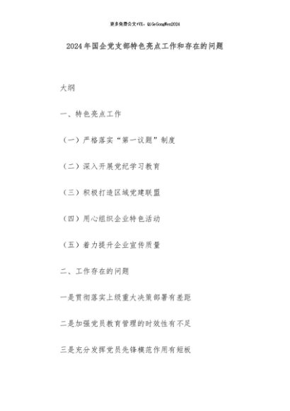 / 【七哥公文】2024年:2024年国企党支部特色亮点工作和存在的问题+更多免费公文+VX:QiGeGongWen2024