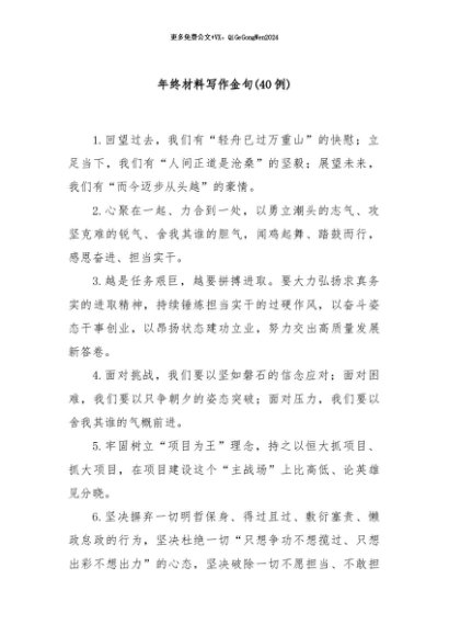 / 【七哥公文】2024年:(40例)年终材料写作金句+更多免费公文+VX:QiGeGongWen2024