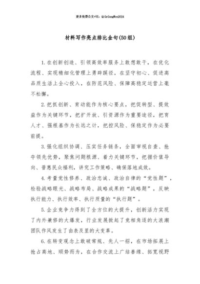 / 【七哥公文】2024年:(50组)材料写作亮点排比金句+更多免费公文+VX:QiGeGongWen2024