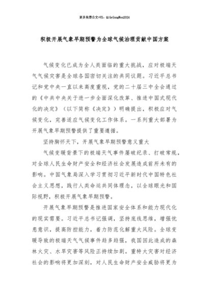 / 【七哥公文】2024年:积极开展气象早期预警为全球气候治理贡献中国方案+更多免费公文+VX:QiGeGongWen2024