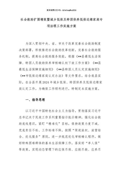 【七哥公文】2024年:社会救助扩围增效暨城乡低保及特困供养低保边缘家庭专项治理工作实施方案+更多免费公文+VX:QiGeGongWen2024