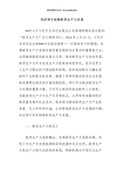 / 【七哥公文】2024年:浅谈审计助推新质生产力发展+更多免费公文+VX:QiGeGongWen2024