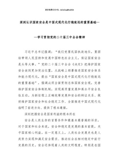 【七哥公文】2024年:深刻认识国家安全是中国式现代化行稳致远的重要基础——学习贯彻党的二十届三中全会精神+更多免费公文+VX:QiGeGongWen2024