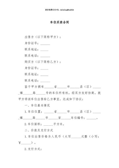 / 【七哥公文】2024年:车位买卖合同+更多免费公文+VX:QiGeGongWen2024