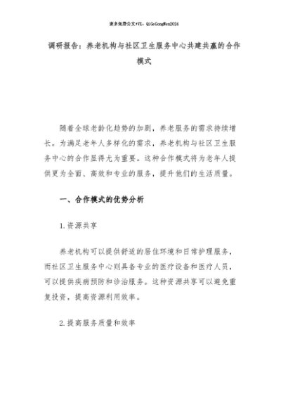 【七哥公文】2024年:调研报告:养老机构与社区卫生服务中心共建共赢的合作模式+更多免费公文+VX:QiGeGongWen2024