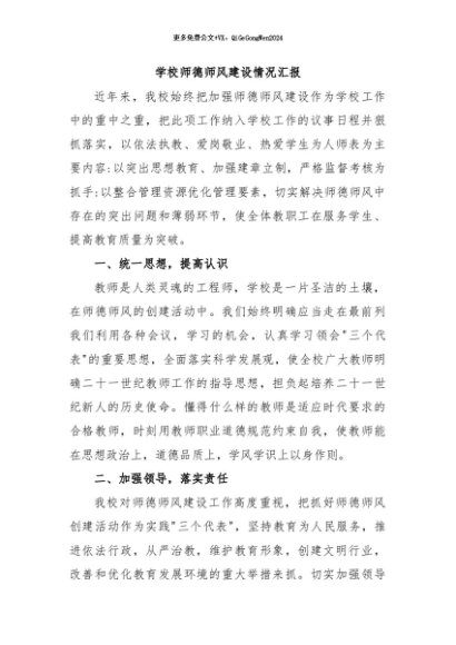 / 【七哥公文】2024年:学校师德师风建设情况汇报+更多免费公文+VX:QiGeGongWen2024