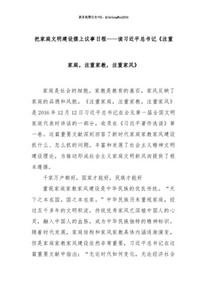【七哥公文】2024年:把家庭文明建设摆上议事日程——读习近平总书记《注重家庭,注重家教,注重家风》+更多免费公文+VX:QiGeGongWen2024