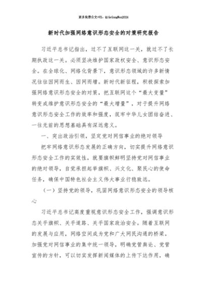 【七哥公文】2024年:新时代加强网络意识形态安全的对策研究报告+更多免费公文+VX:QiGeGongWen2024