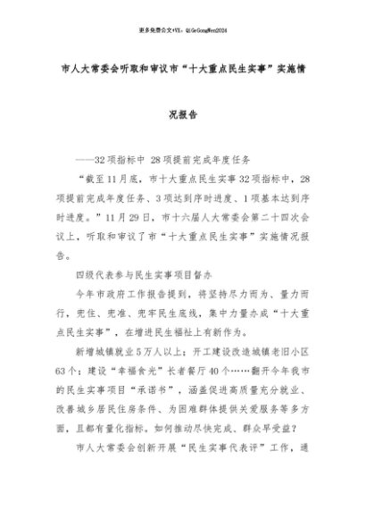 【七哥公文】2024年:市人大常委会听取和审议市“十大重点民生实事”实施情况报告+更多免费公文+VX:QiGeGongWen2024