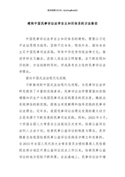 / 【七哥公文】2024年:建构中国民事诉讼法学自主知识体系的方法路径+更多免费公文+VX:QiGeGongWen2024